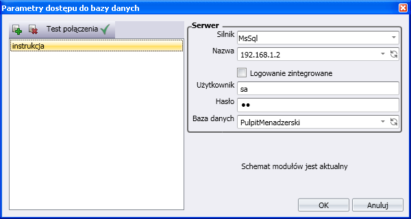 Po wpisaniu wszystkich potrzebnych danych klikamy „Test połączenia”.