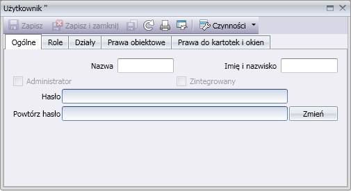 W poszczególnych zakładkach dodajemy prawa dla użytkownika, możemy też skorzystać z zakładki Role które nadają zestaw uprawnień.