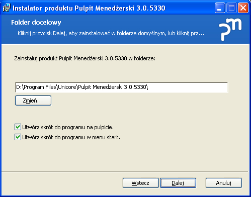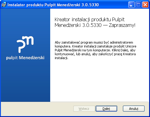 Instrukcja instalacji Pulpitu Menedżerskiego