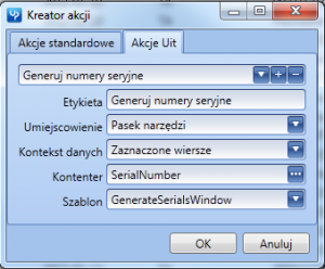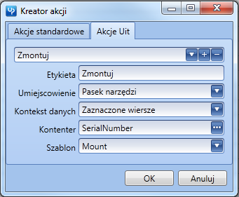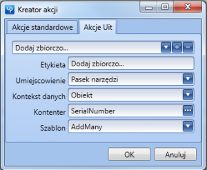 2. Dodanie akacji Uit dla widoków kartotek