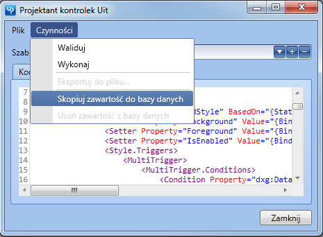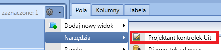 - Z menu systemowego uruchom projektanta kontrolek Uit – (Menu Systemowe -> Narzędzia -> Projektant kontrolek Uit)