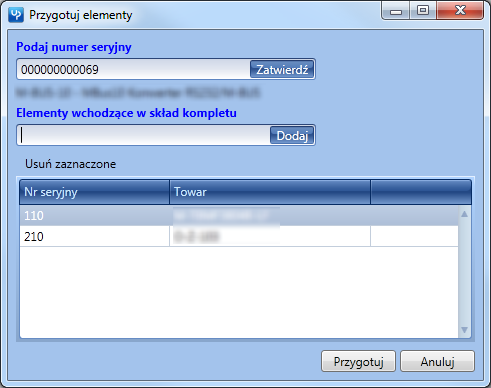 Kliknięcie przycisku “Przygotuj” powiąże ze sobą podane numery seryjne.