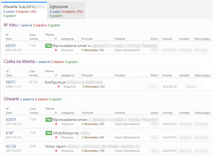 Do zakładki otwarte trafiają zadania o największym priorytecie i będą realizowane pierwszorzędnie.