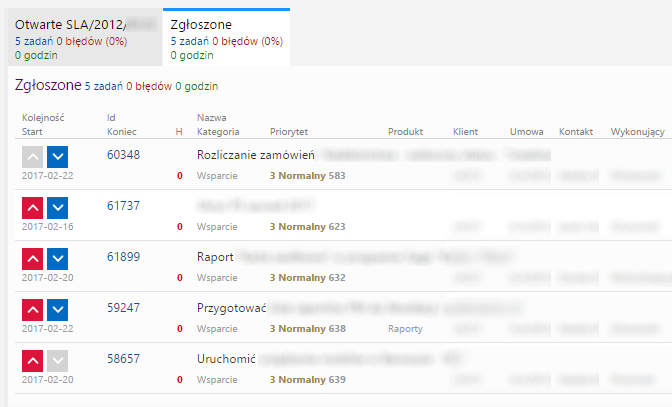 Zgłoszenie, które znajduje się najwyżej, trafi jako pierwsze do listy zadań otwartych, po realizacji jednego z nich.