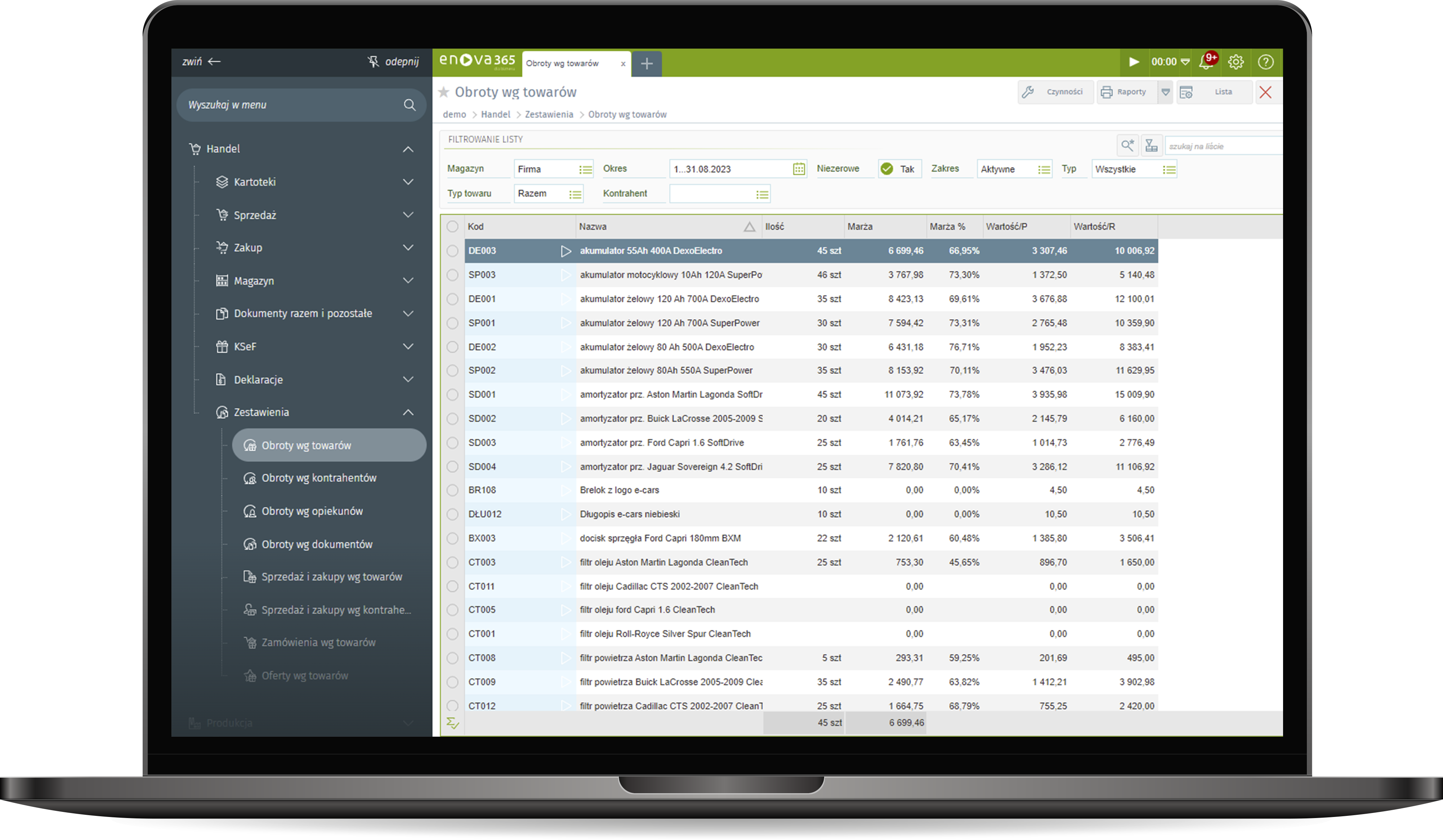 Główne obszary wspierane przez system enova365 to: