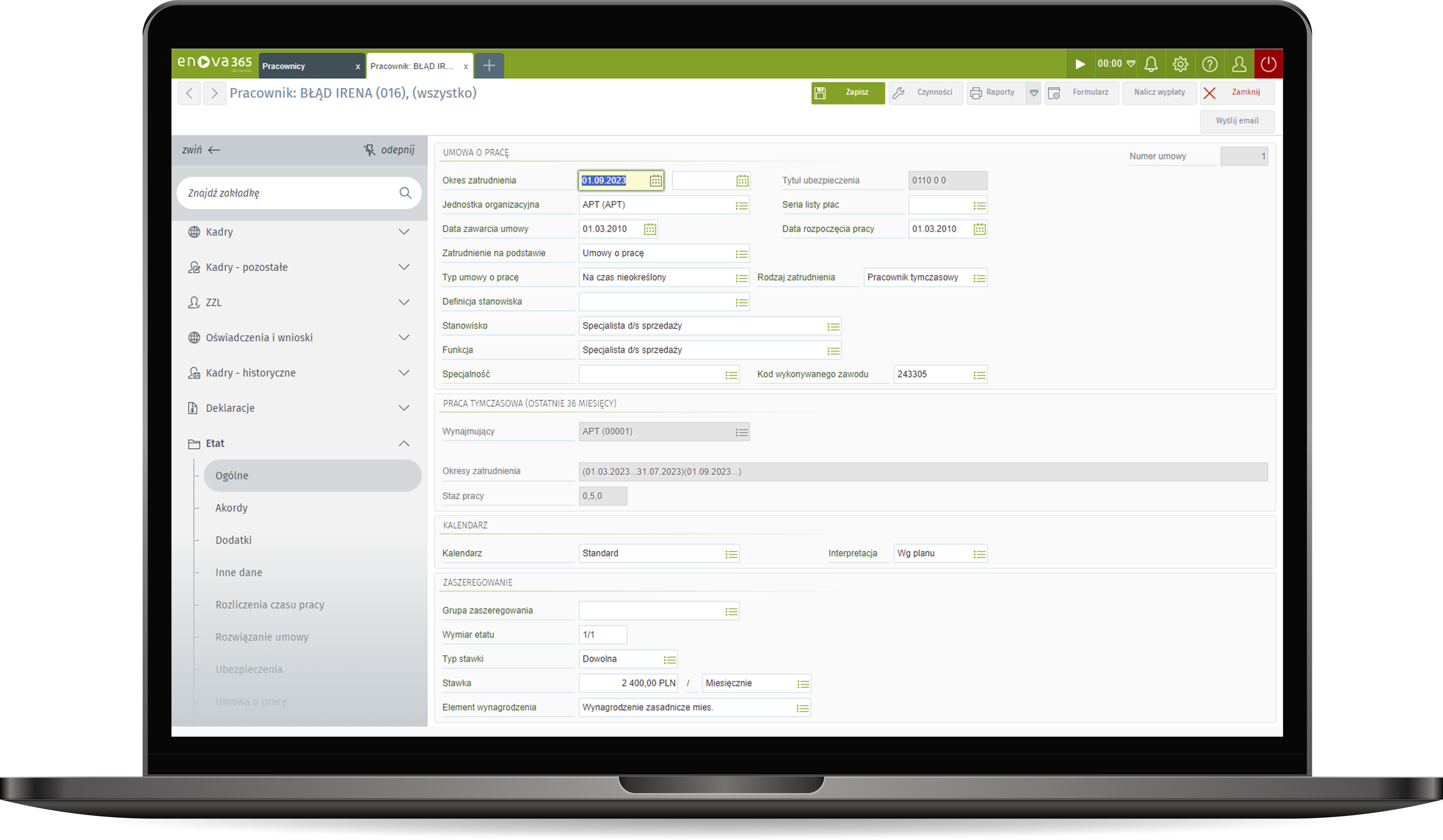 Rozwiązanie dedykowane w szczególności pracownikom działów kadr i płac. Umożliwia generowanie deklaracji ZUS i PIT, import do programu Płatnik, obsługę pracowników niepełnosprawnych, generowanie raportów, przygotowanie dokumentacji kadrowej, rejestrowanie czasu pracy i nieobecności pracowników, a także obsługę umów o pracę i cywilnoprawnych. Program wspiera dział HR, umożliwiając automatyzację rutynowych zadań i przeprowadzanie procesów rekrutacyjnych. Wdrożenie programu kadrowo-płacowego enova365 usprawni i przyspieszy pracę całej firmy, zapewniając zgodność z obowiązującymi przepisami prawnymi.